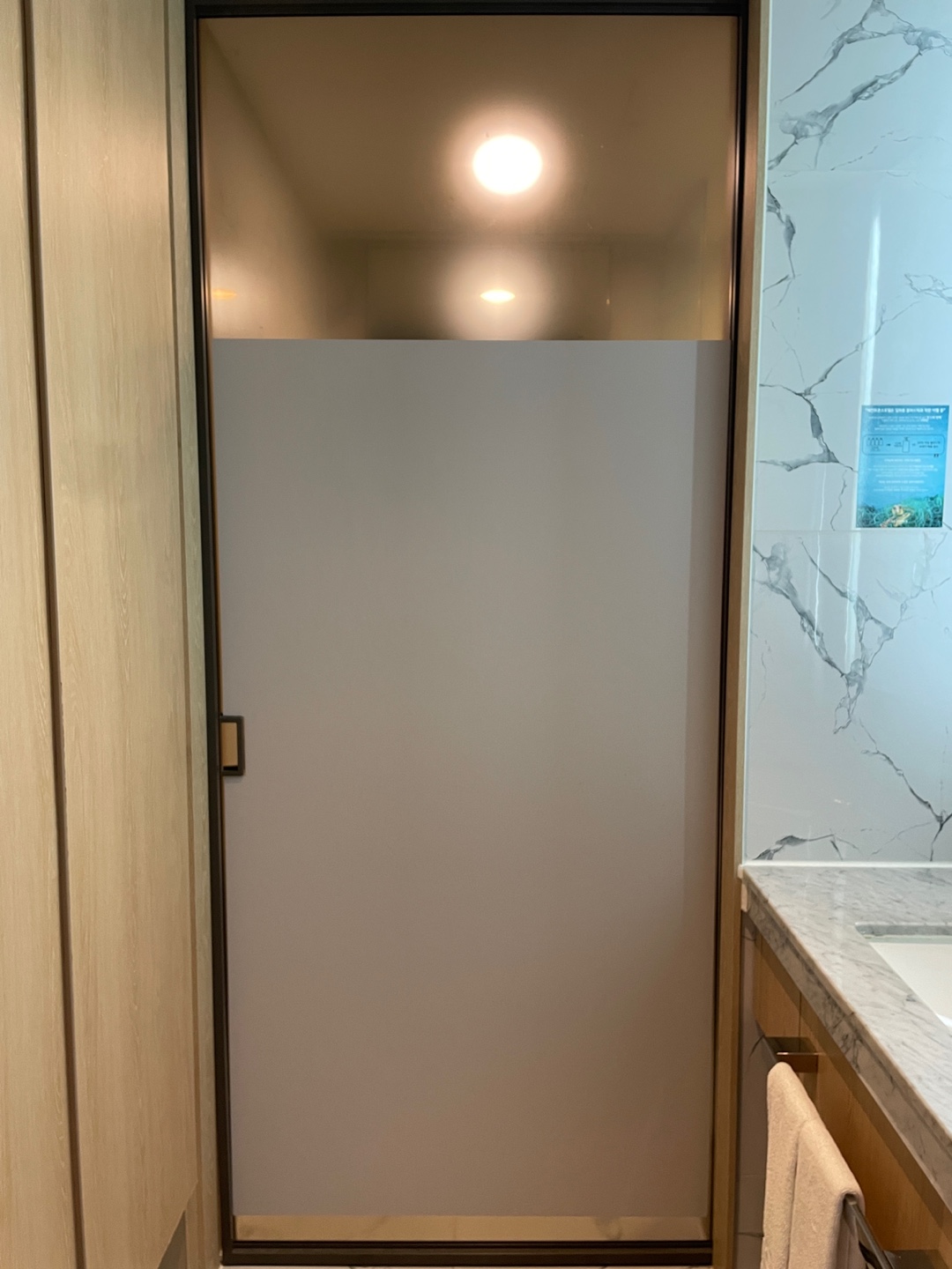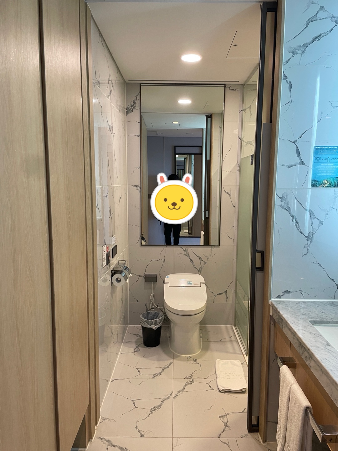 첫 사진과 같이 세면대와 욕실이 문으로 분리되며 변기에 비데가 설치되어 있었습니다.