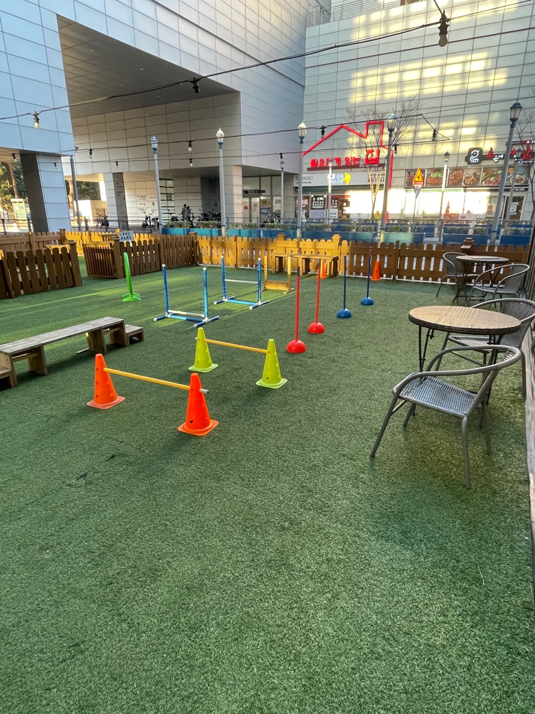 오션타워 1층에 위치한 야외 반려견 놀이터입니다.