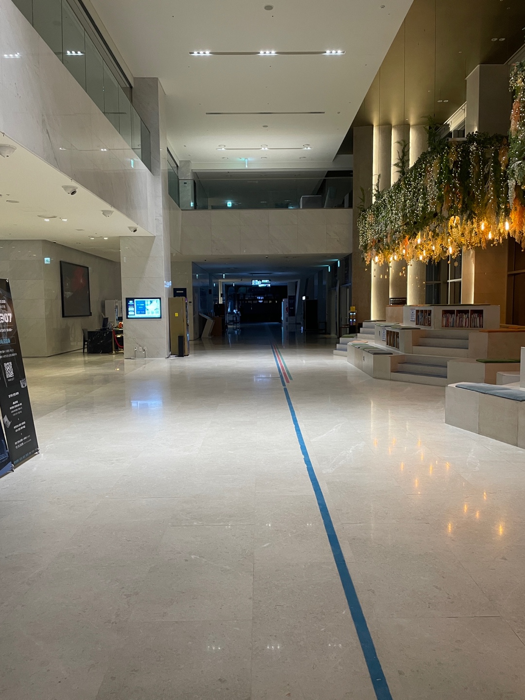 로비 천장이 예쁘게 장식되어 있었고 휴게공간이 특이하게 계단식으로 되어 있었습니다.