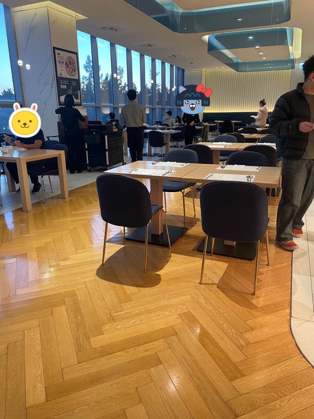 - 저는 호텔 조식뷔페에서 보통 스크램블, 샐러드, 과일만 먹어서 조식비용이 조금 부담되기도 했지만 비싼 만큼 확실히 다른 호텔보다 메뉴가 다양하고 맛, 서비스 등 조식 퀄리티가 좋았습니다. 조식으로 다양한 메뉴를 즐기시는 분들께 추천합니다.