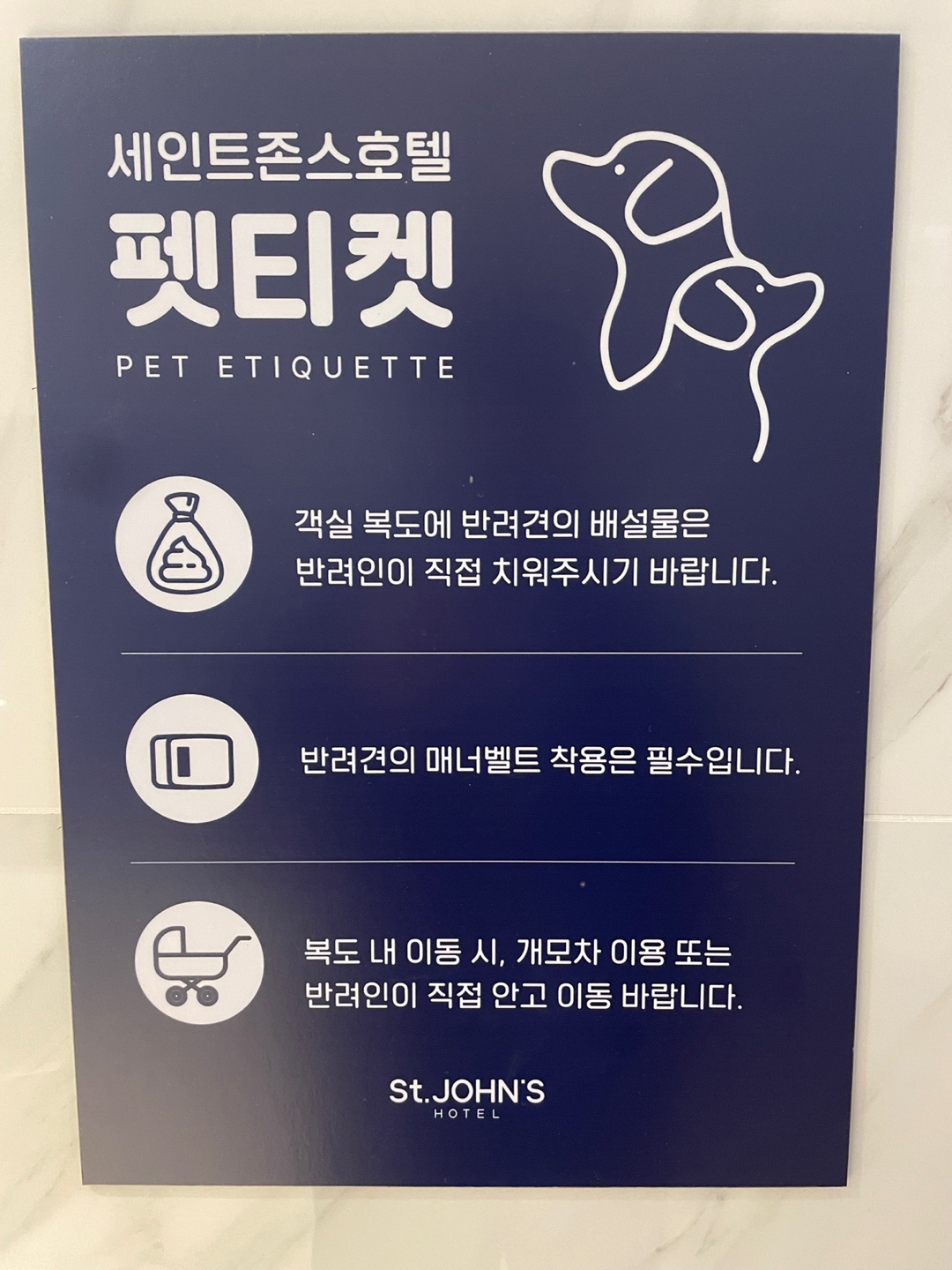 반려견 동반 객실을 보유한 호텔답게 로비에 반려동물 화장실, 식수대를 비롯해 반려견 환영 조형물도 있었습니다.