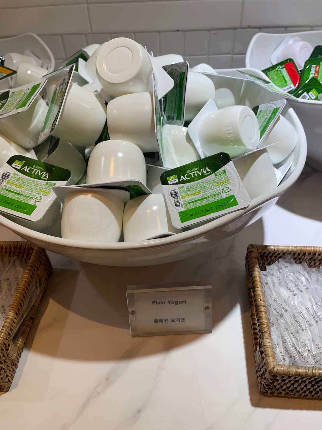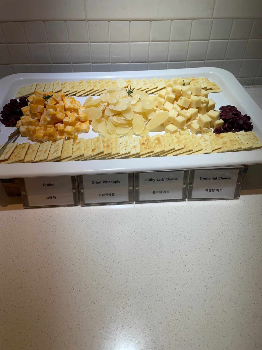 요거트(플레인, 복숭아, 딸기), 모타겔라, 비어햄, 크래커, 건파인애플, 콜비잭 치즈, 에멘탈 치즈