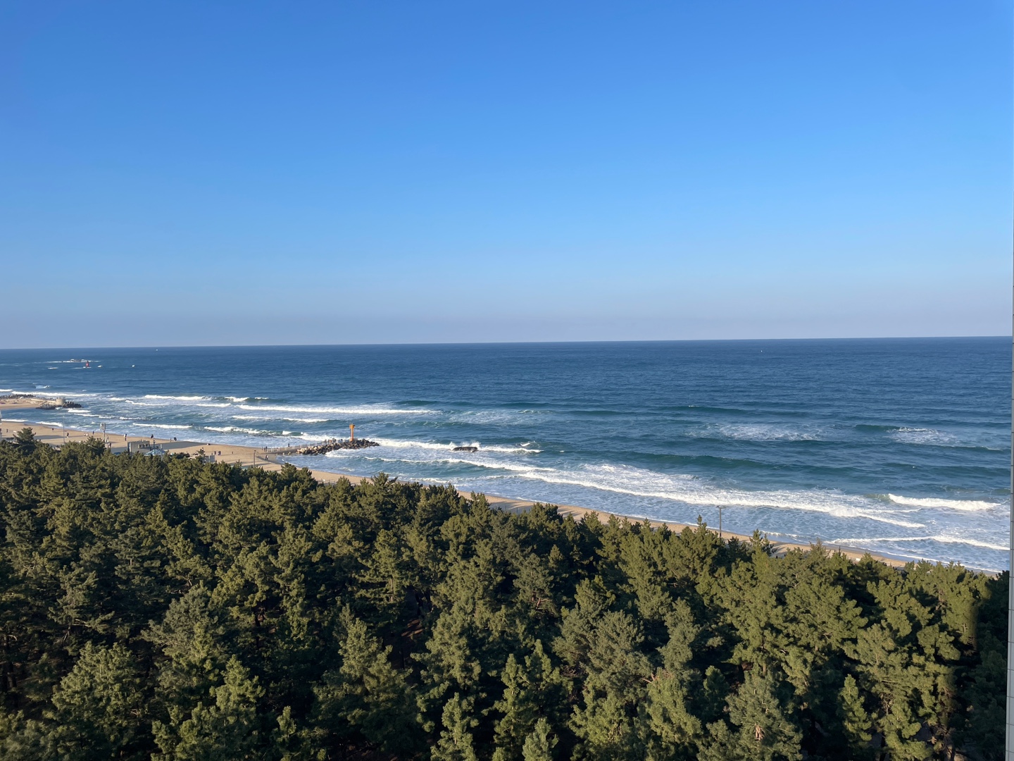 정면뷰는 아니지만 바다 앞에 나무와 모래사장만 보여서 뷰는 정말 예뻤습니다.