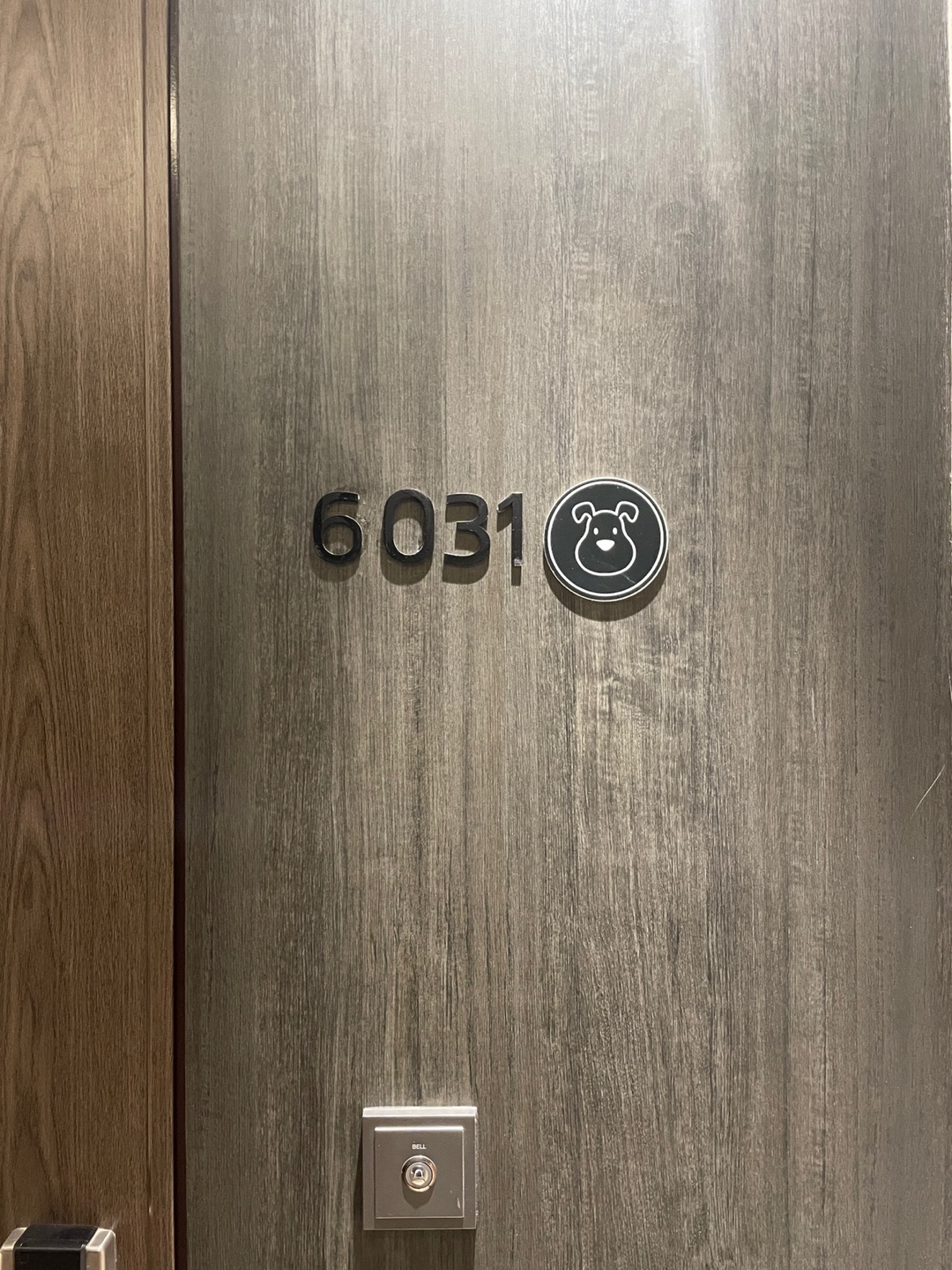 반려견 동반 가능 객실은 객실 문에 귀여운 강아지 문양이 있었습니다.
