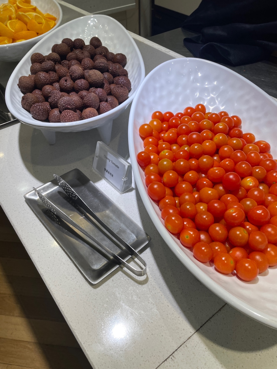 파인애플, 포도, 사과, 오렌지, 리치, 방울토마토, 주스(오렌지, 사과, 토마토), 얼음, 커피
